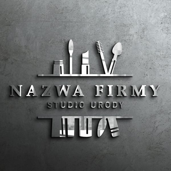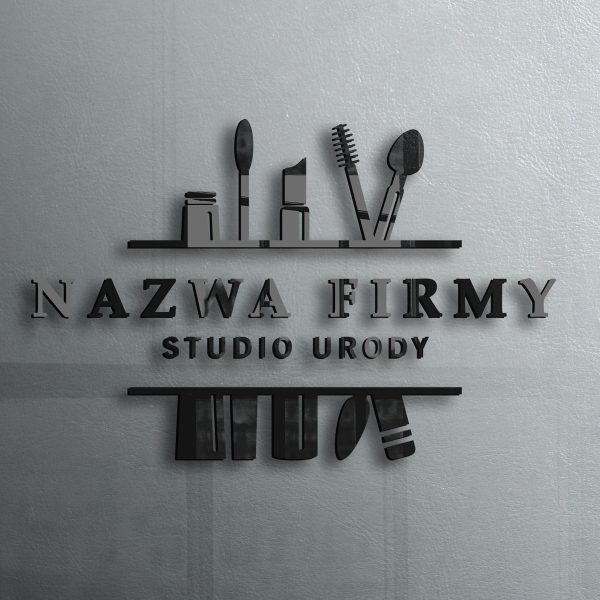 Śliczne logo na ścianę, które przedstawia przybory do makijażu. Piękne logo 3D polecamy do studia urody.