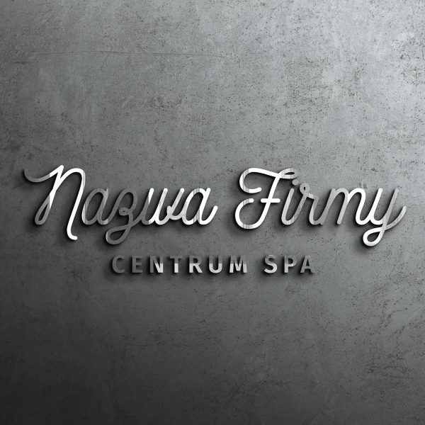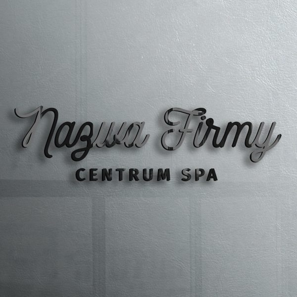 Dekoracyjny logotyp z plexi. Przedstawiający kaligraficzny krój pisma. Idealnie udekoruje recepcję w SPA.