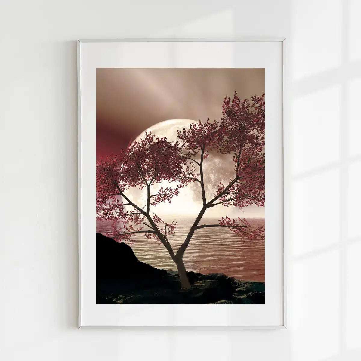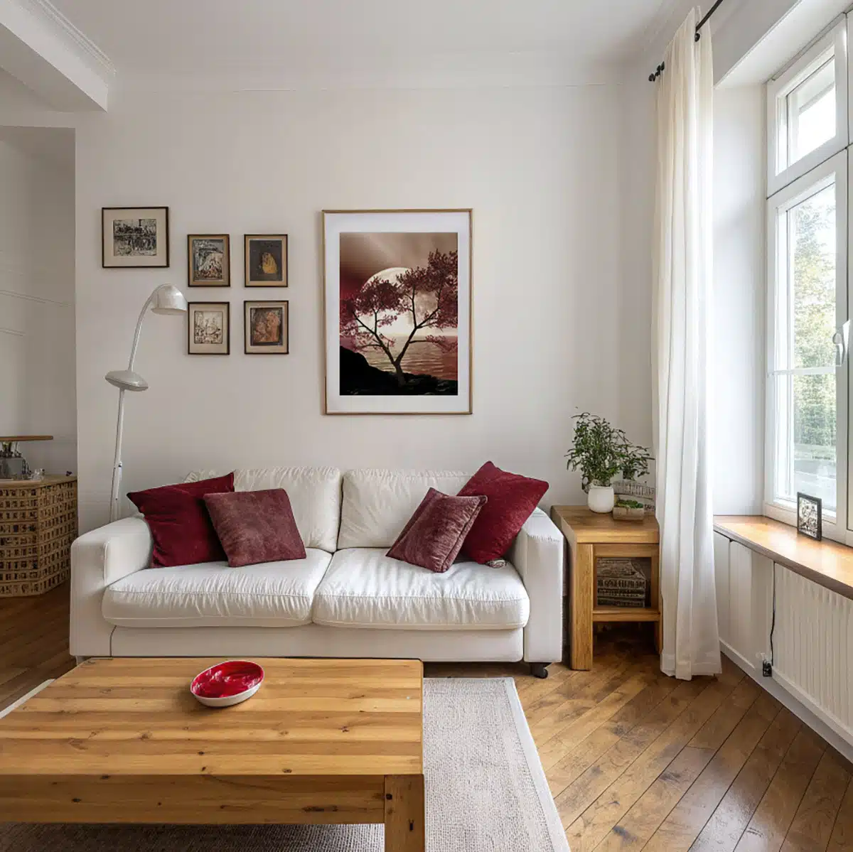 Nie wszystko, co piękne, musi być krzykliwe. Czasami wystarczy jeden kolor, który wypełnia wnętrze spokojem i szczyptą teatralnego nastroju. Ten plakat to hołd dla ciepłych tonów – burgundu i sepii, które razem tworzą obraz trochę jak wspomnienie, trochę jak obietnica.