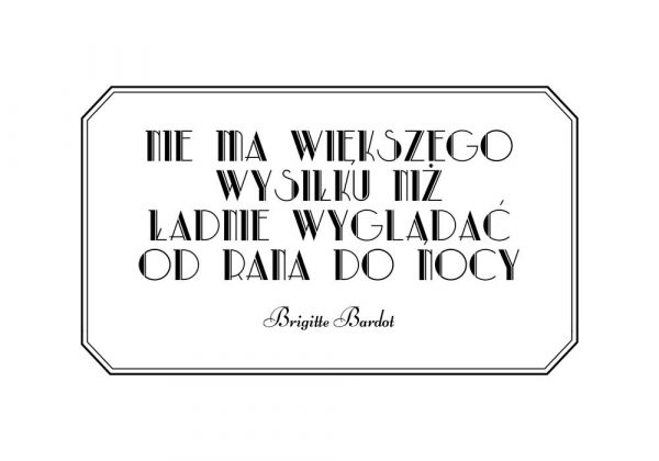 Plakat przedstawiający cytat – Nie ma większego wysiłku niż ładnie wyglądać od rana do nocy. Plakat w kolorze czarno-białym. Dekorację polecamy do ozdoby biura.
