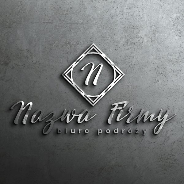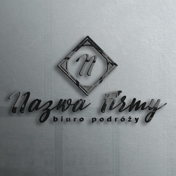 Delikatne logo z plexi z motywem dekoracyjnej ramki z literką. Doskonale udekoruje ścianę za biurkiem w biurze podróży.