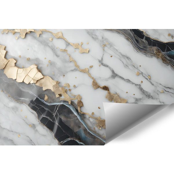 Fototapeta prezentuje złote płatki ułożone na tle białego marmuru, tworząc efekt eleganckiego kontrastu i subtelnej tekstury.